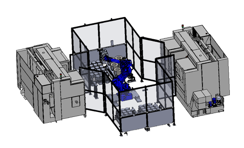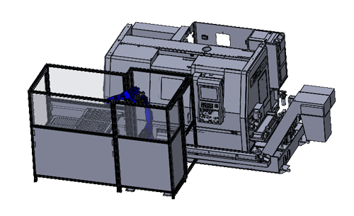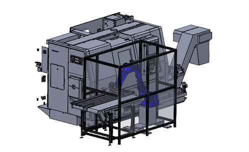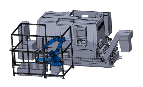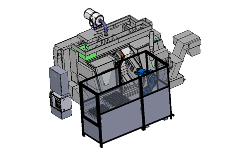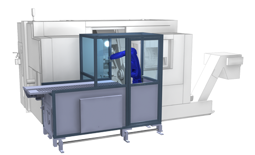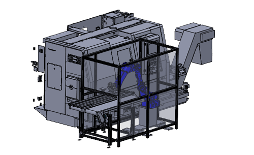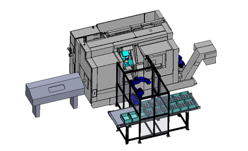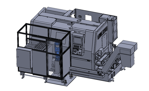 - Beladung/Entladung einer Drehmaschine mit Wellenteile direkt aus dem Transportbehälter